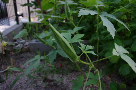 今年チャレンジした庭のオクラ。