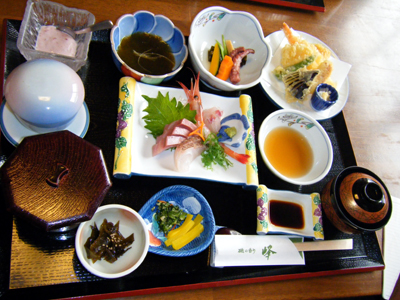 昼食は「お食事処 峰」で天刺定食を注文し地元鮮魚を堪能。