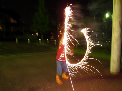 夕食後、家の近くで花火。