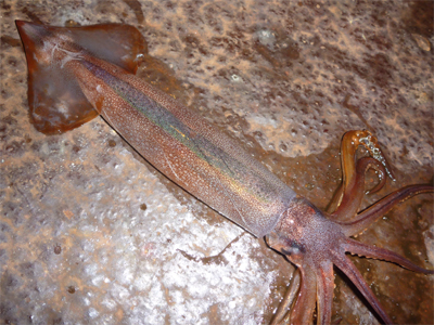するとSTさんが「スルメイカがいますよ」と言うので、タモing開始。