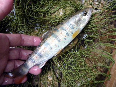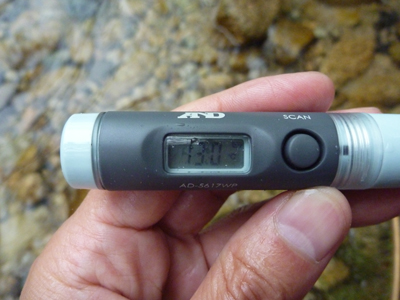 ゴミかと思ったらアマゴが手前に向かったヒットして、足元まで流れて来ました。