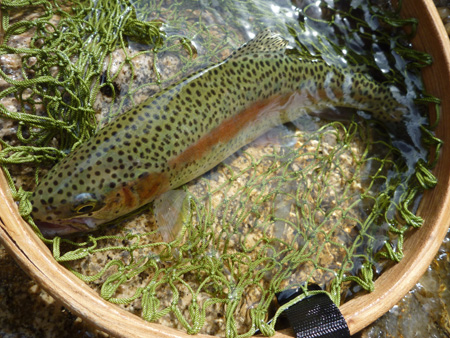 水温のせいか追いも少なく、アマゴと綺麗な虹鱒がヒットしたのみで