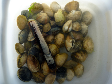 約1時間で家族3人分のみそ汁の具を確保。一応、大野のアサリ。