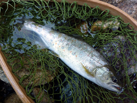 それでもあきらめずに釣り上がって行き、瀬の開きから流れがゆるくなった場所で