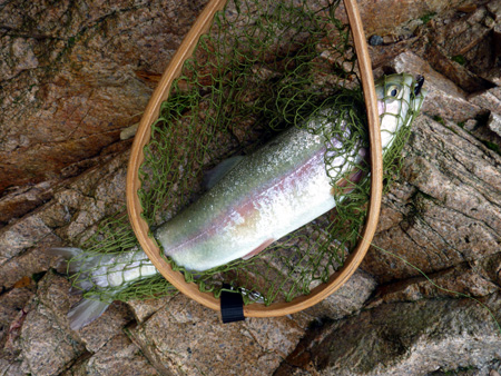 重たいので時間をかけて上がってきたのは予想通り「でっかい虹鱒」