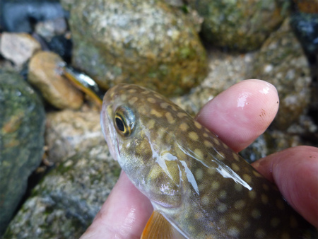 行ってみると予想以上に落ち着いてしまっていて、魚影も薄くアマゴは小型ばかり。